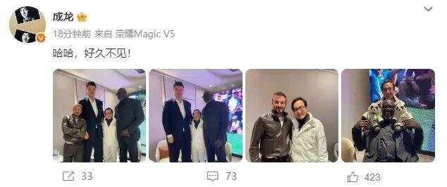10月11日,成龙在个人微博晒出与姚明、奥尼尔、贝克汉姆的合影,并配文:“哈哈,好久不见!”画面中,成龙站在奥尼尔和姚明两位篮球运动员之间,身高差尽显。在其中一张合影中,成龙甚至做出了一副惊叹又惊讶的搞笑表情。网友调侃“成龙看起来就像站在两人之间的小人物”、“身高差很大”。据此前报道,NBA中国澳门比赛将于10月10日举行,篮网队和太阳队将于10月10日和12日在中国澳门进行两场比赛,当晚的比赛结合了来自体育、娱乐、商业等领域的已知数据。有网友拍到成龙坐在马云和贝克汉姆中间看比赛e.当晚还有姚明、奥尼尔、林书豪、梁朝伟、刘嘉玲及其丈夫梁咏琪等娱乐和体育明星。来源 |潇湘晨报